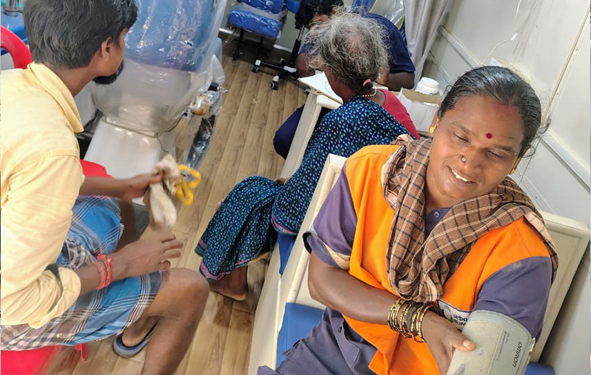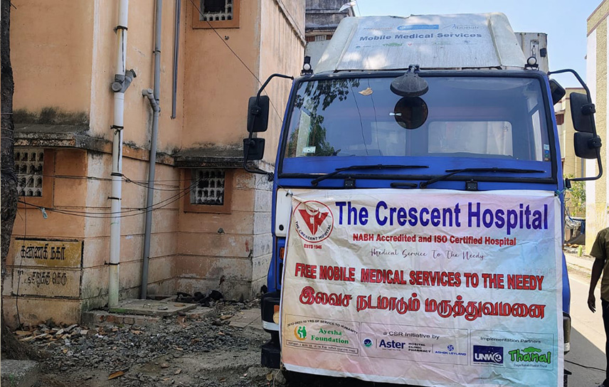 Another feather in our cap is Mobile Medical Service, which was inaugurated in February 2025 by our Patron H H Nawab Mohammed Abdul Ali Azimjah, Prince of Arcot. It is a joint venture of Aster, Thanal, Ashok Leyland, Ayesha Foundation, UNWO, Albonair and the Crescent Hospital. The Mobile Clinic Van is managed by our Hospital. The programme of visits to various localities is done in coordination with volunteers from the localities. The expenditure towards free supply of medicine to the patients, running expenses and salaries are equally shared with AYESHA FOUNDATION. We are delighted to report that during the 6 months period from February to July 2025, the number of patients benefitted by our Mobile Medical Service were 5210. We are Thankful to Mr. LS.SHERIEF for his honorary services in efficiently managing the services.